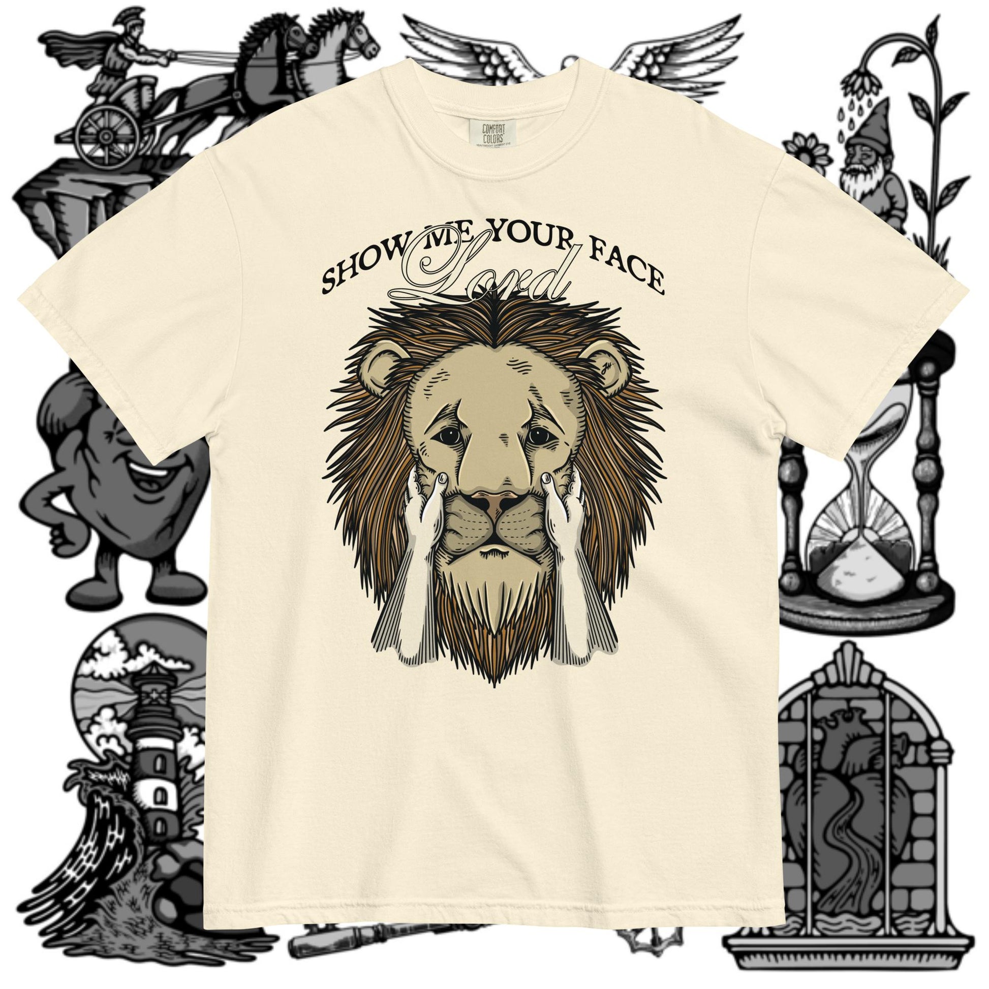 Show Me Your Face, Lord design features a hand-drawn lion face lifted in gentle hands — a prayerful call to encounter God’s presence. Printed on soft, 100% ring-spun cotton Comfort Colors® tees, this unisex shirt blends vintage comfort with bold faith. Perfect for worship, prayer, and everyday wear.